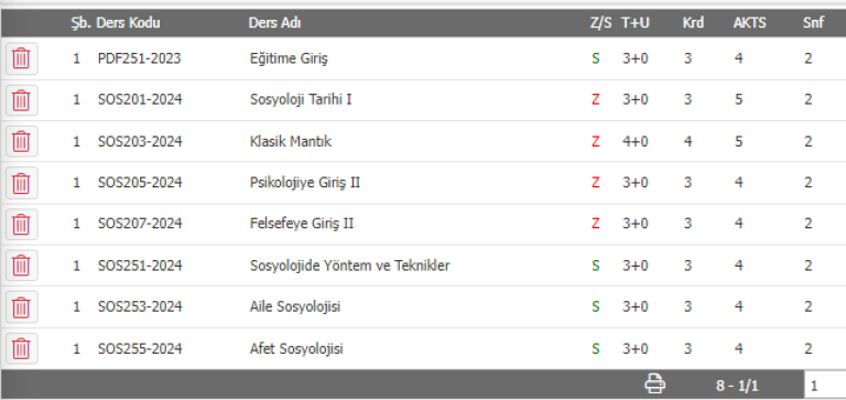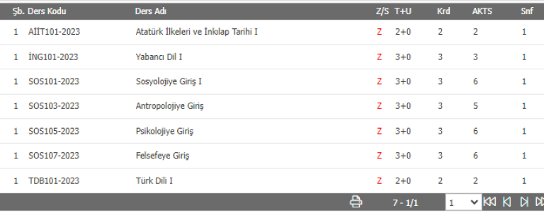 Sosyoloji 1 Sınıf Öğrencilerinin Seçmesi Gereken Dersler: